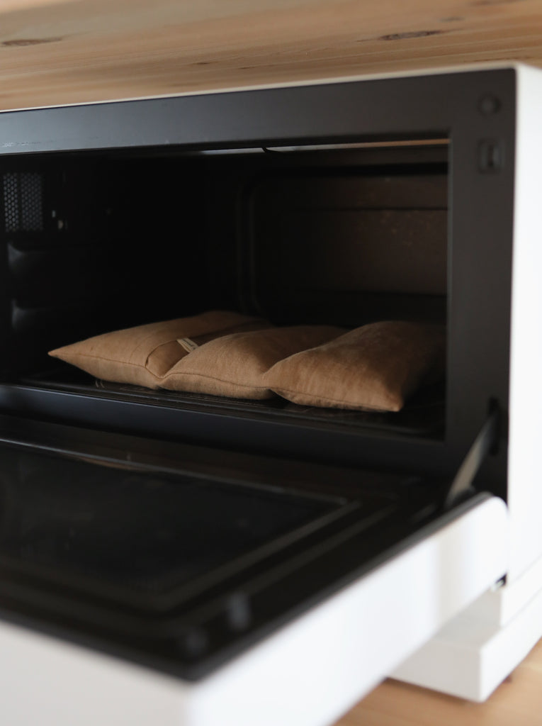 500W-600Wの電子レンジで2分-2分20秒程加熱し、お好きな箇所に当てて使います。
