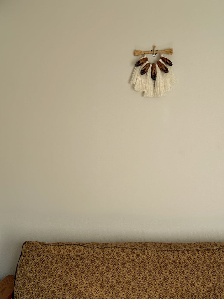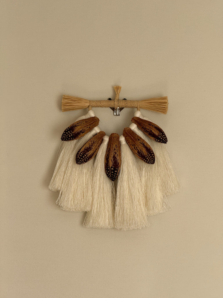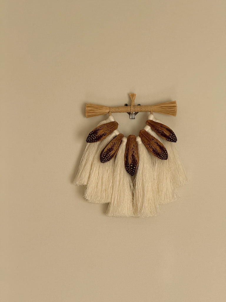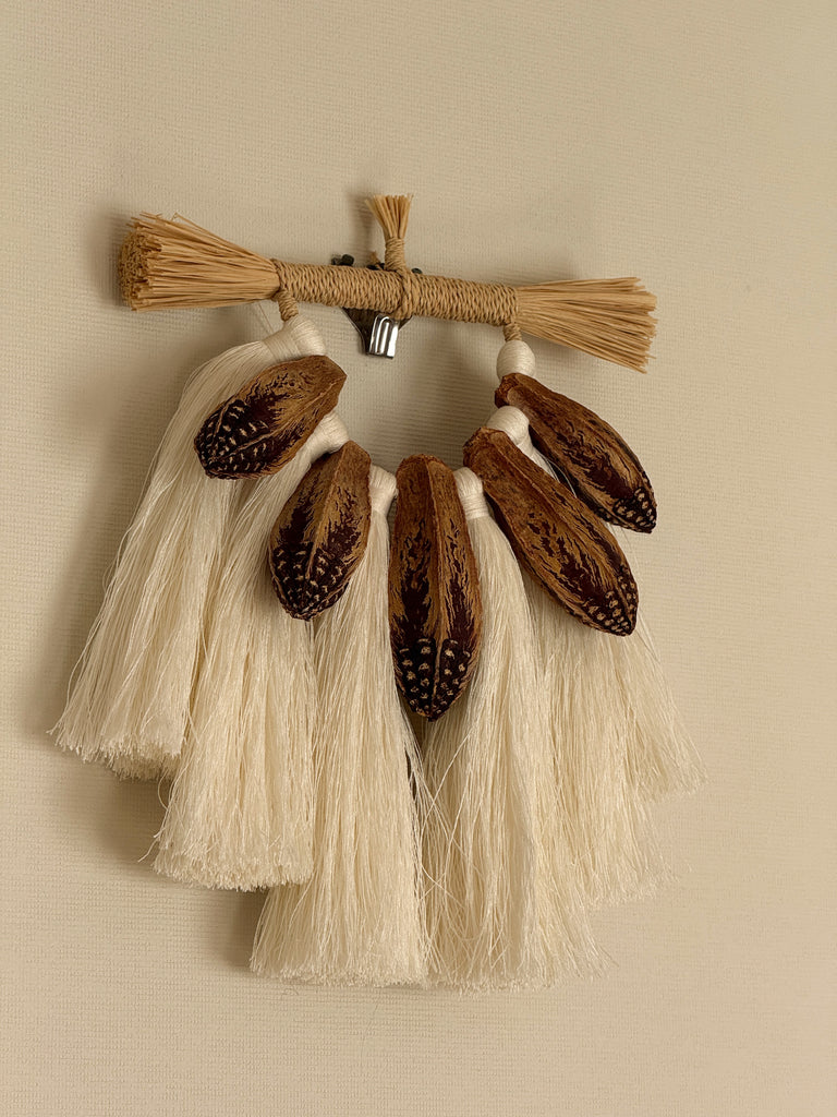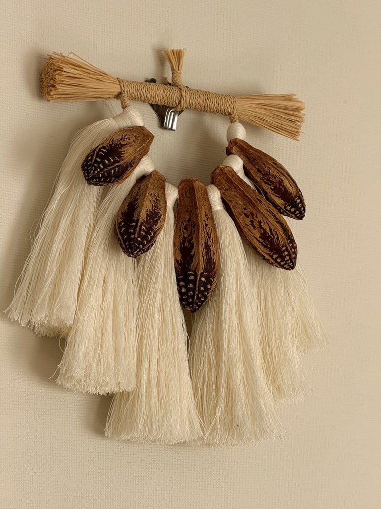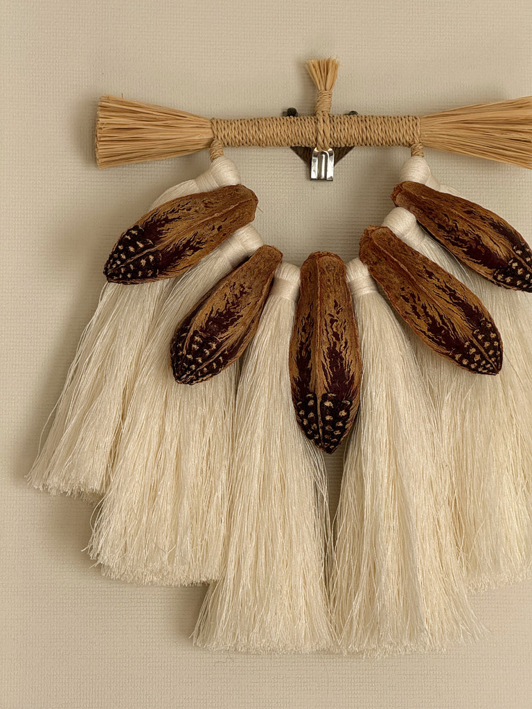 マカボニーヘッドという植物と、リネン糸を合わせて、すべて植物と自然のものだけで作られています。