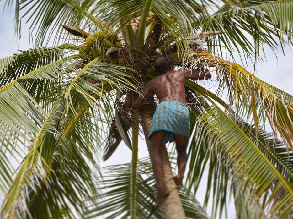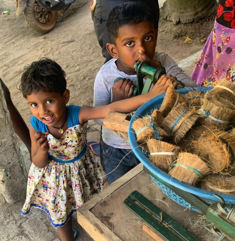 ミネラルを豊富に含み、スリランカの人々にとって欠かせないココナッツ。果実を覆っている繊維質の厚い殻を利用した、プラスチックフリーのたわしです。
