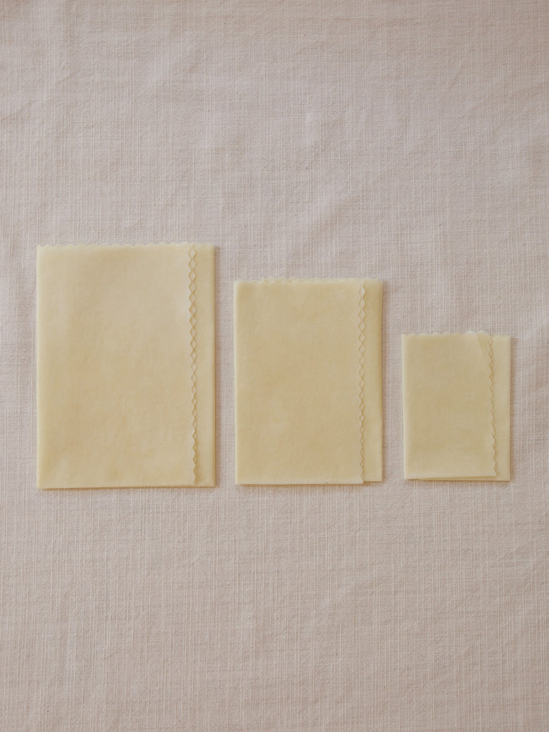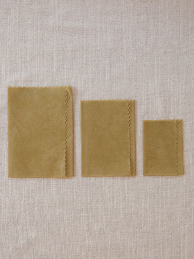 使い捨てのプラスチックラップのようにゴミを出さず、生産の過程から使用後まで、環境に悪影響を与えません。程よい粘着性があるため、手の温かさで好きな形にととのえ、ぴったり押さえることでどんな形ににもフィットします。